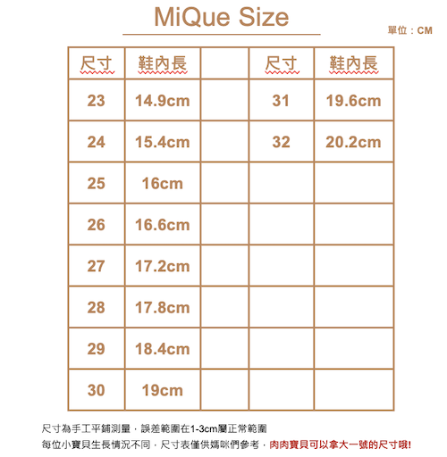 肉肉腳or腳背較厚的寶貝請大一碼哦~