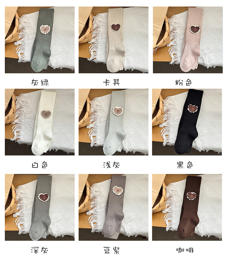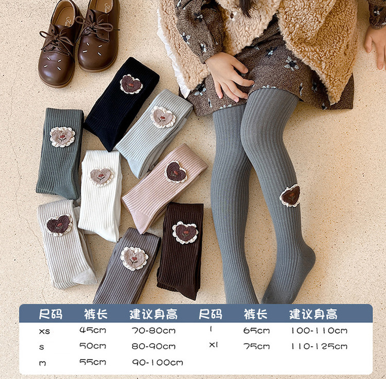 ⌈配件⌋加絨玫瑰花朵坑條包腳褲襪(共9色)