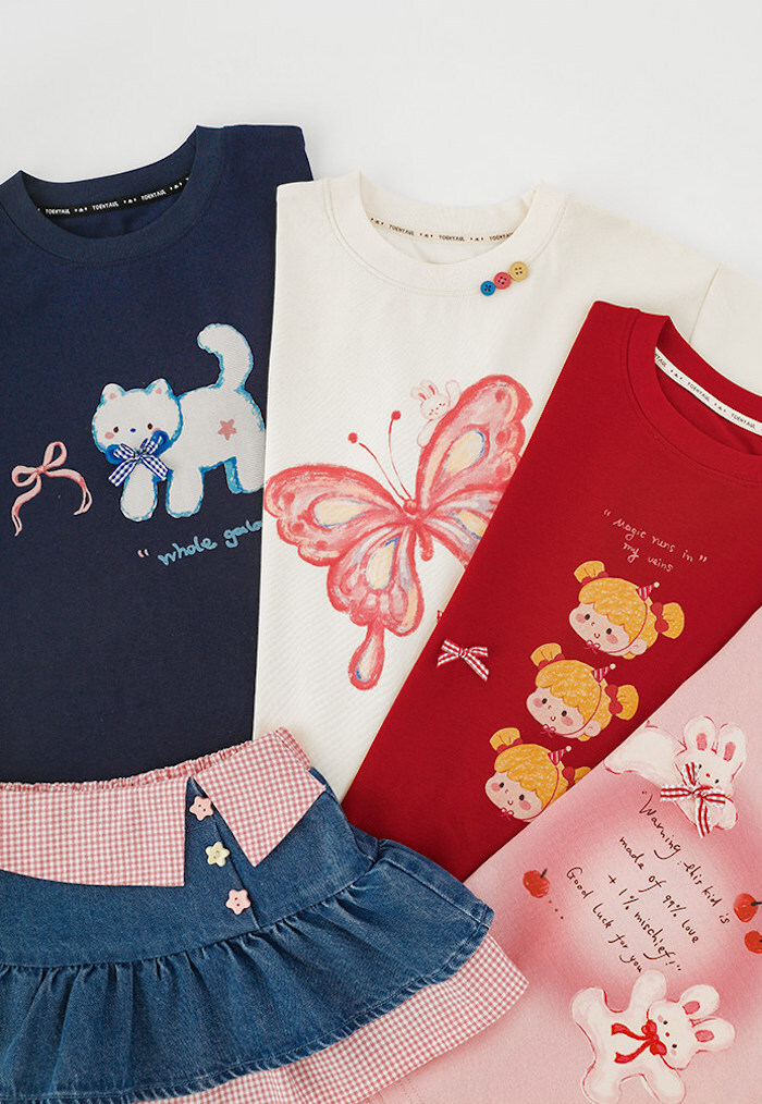 這系列萌寵與蝴蝶 T-shirt,運用了獨特的渲染與拼貼筆觸,把寶貝最愛的粉紅兔兔、優雅蝴蝶與繫著領結的小貓,化作一件件可以穿在身上的藝術品