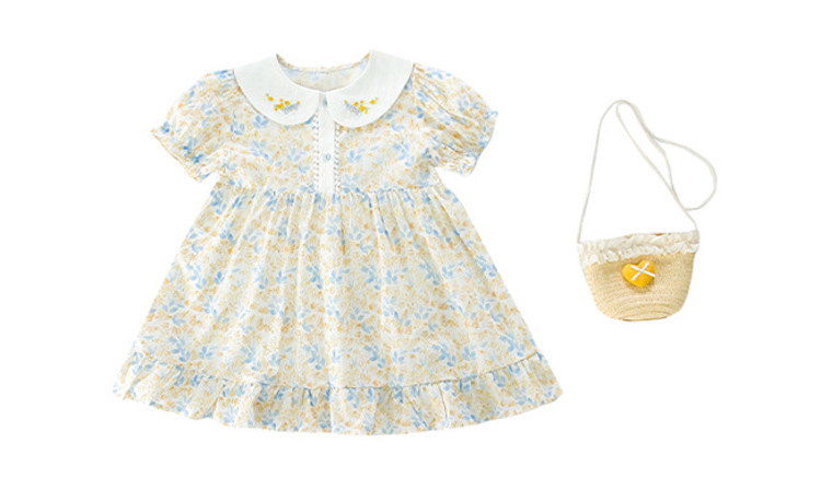 裙身的黃藍碎花配色,像極了陽光灑落的花園,清爽又活潑