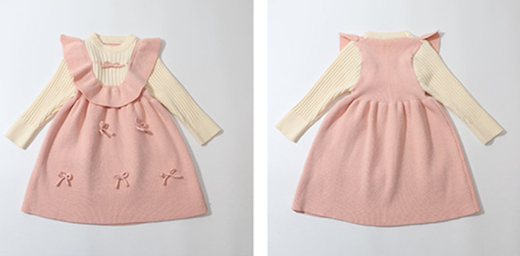 這款蝴蝶結點綴的假兩件設計毛衣洋裝
